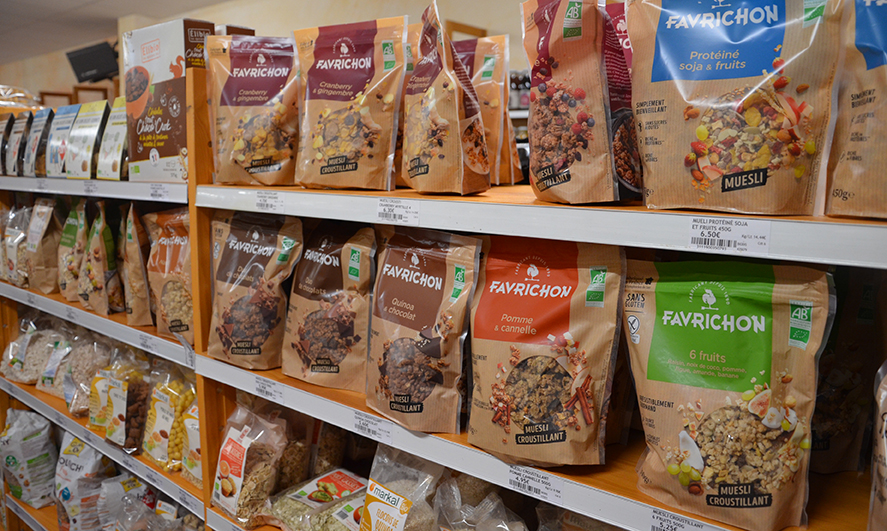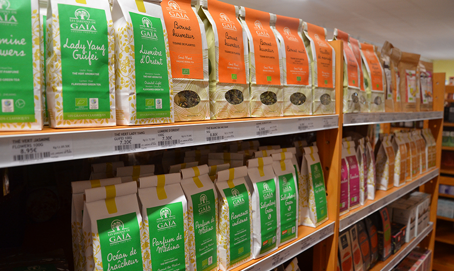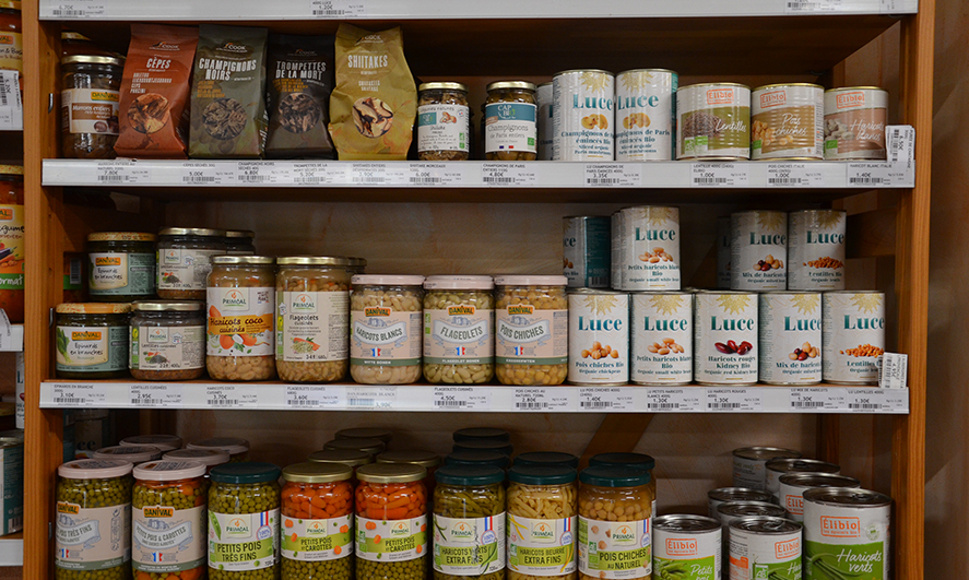 Il dispose d’un large choix de produits bio et locaux : pain, crémerie, yaourts, fromages, soja, céréales, viandes, charcuterie, poisson, miel, vin, gâteaux, pâtes, thé, café, boissons végétales, compotes, etc.