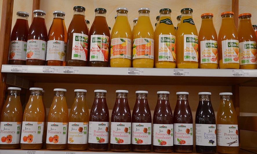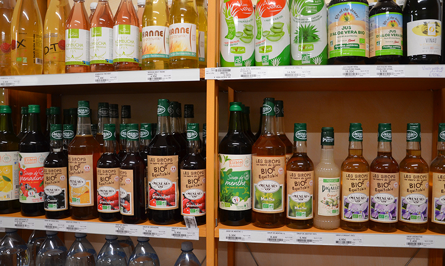 Retrouvez une sélection de produits bio dans notre coin épicerie avec notamment une variété de boissons : jus de fruit, jus de légumes, eau, sirops, laits, thé, café, bière, vins, et bien d’autres encore.